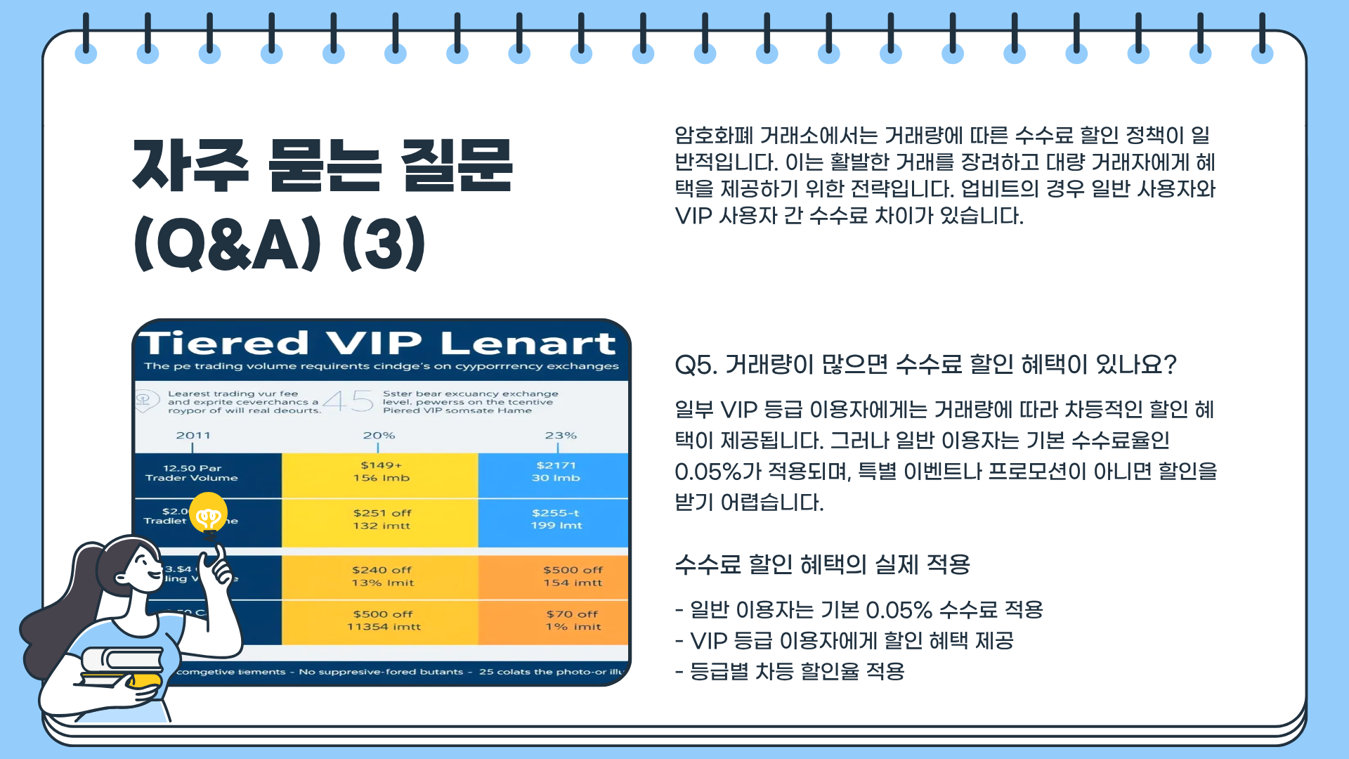 A5. 일부 VIP 등급 이용자에게 할인 혜택이 제공되지만, 일반 이용자는 0.05% 기준이다.