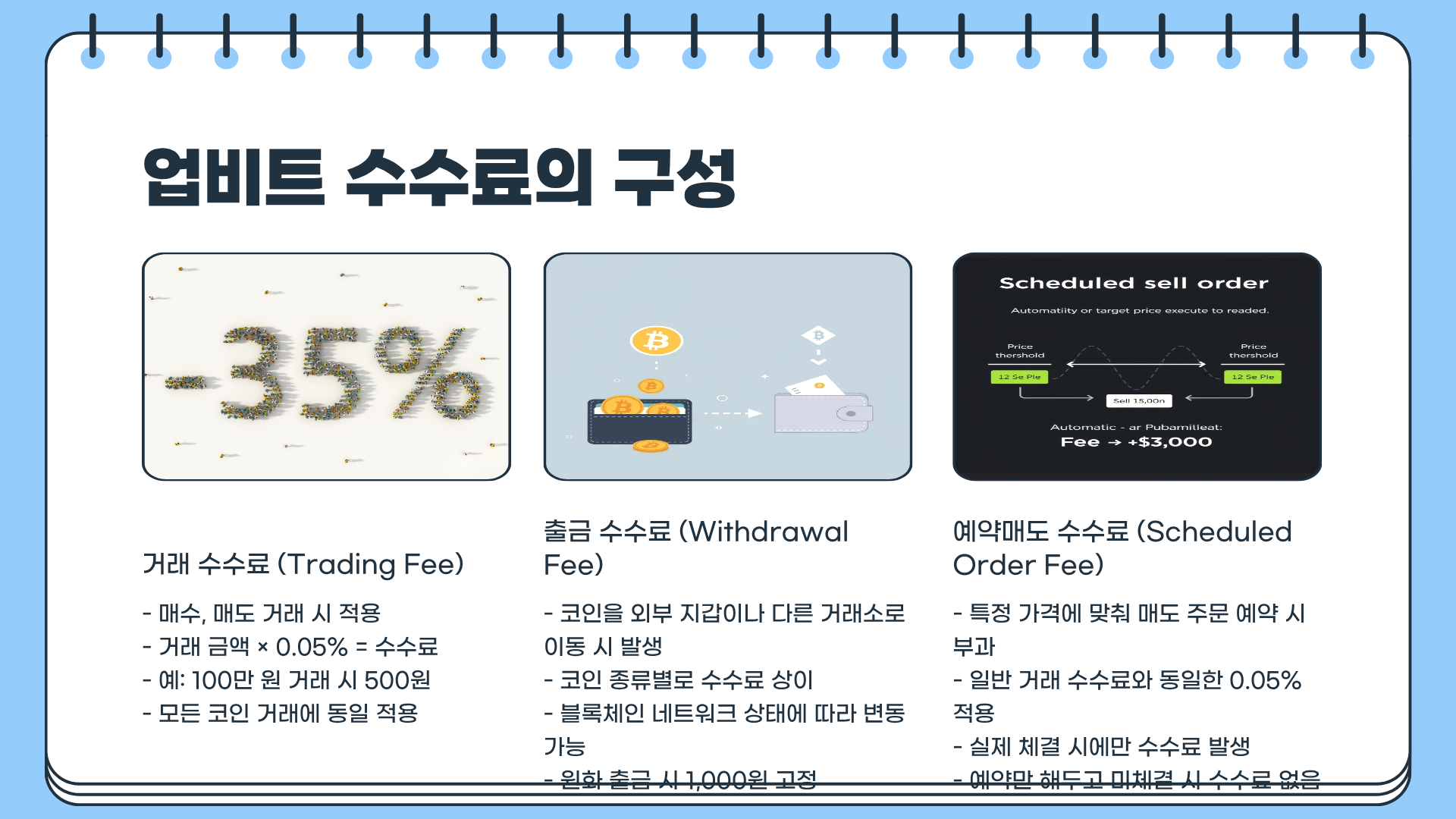 업비트의 기본 거래수수료는 낮은 편이지만, 예약매도, 출금, 거래소 이동 등을 고려하면 장기 투자 시 누적 금액이 상당히 커진다. 따라서 거래 전 수수료 확인, 전략적 예약매도, 이벤트 활용을 통해 비용을 최소화하는 것이 현명하다.