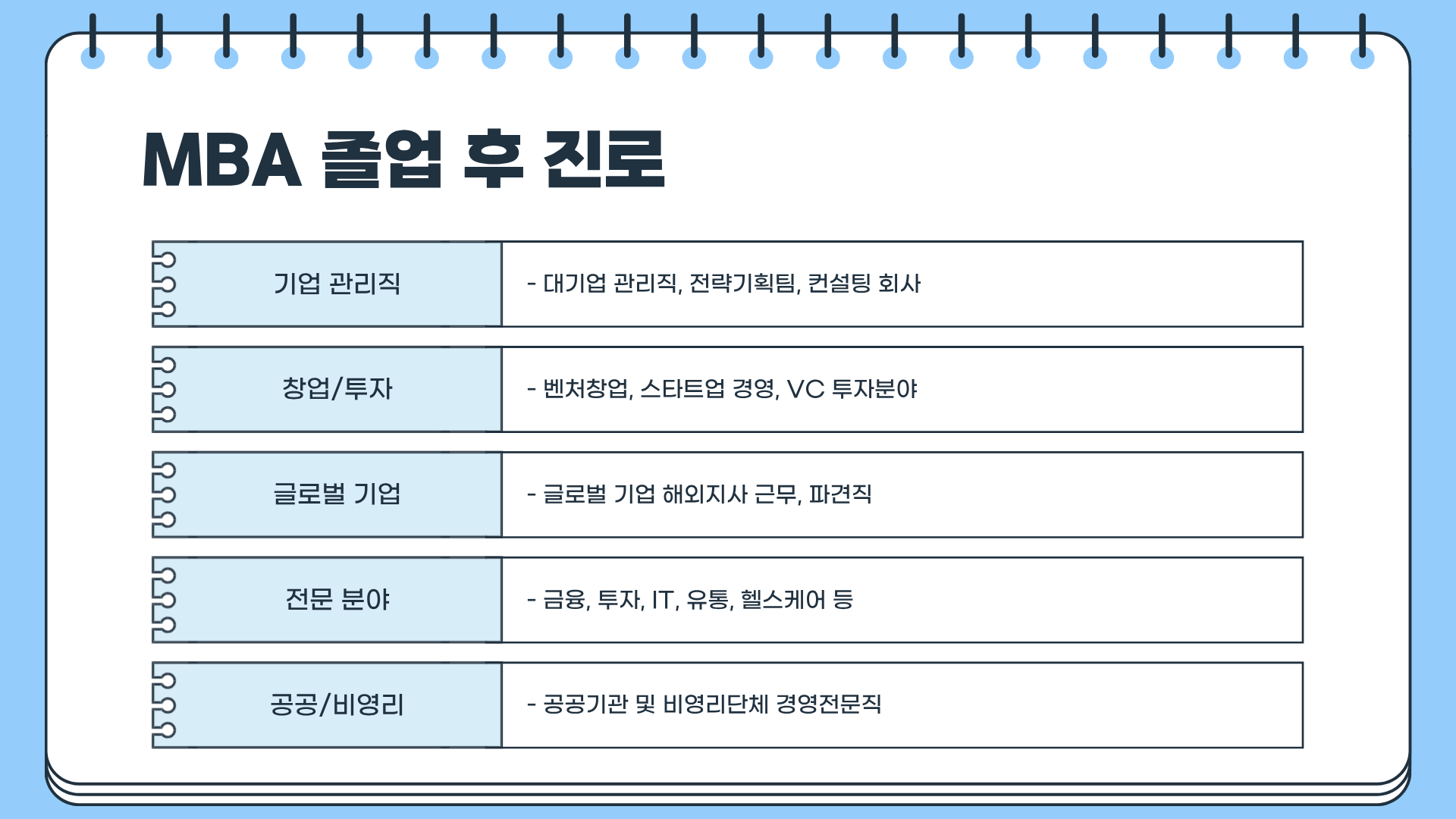 이는 MBA가 단순한 학위가 아니라, **‘커리어의 전환점’**이 될 수 있음을 보여준다.
